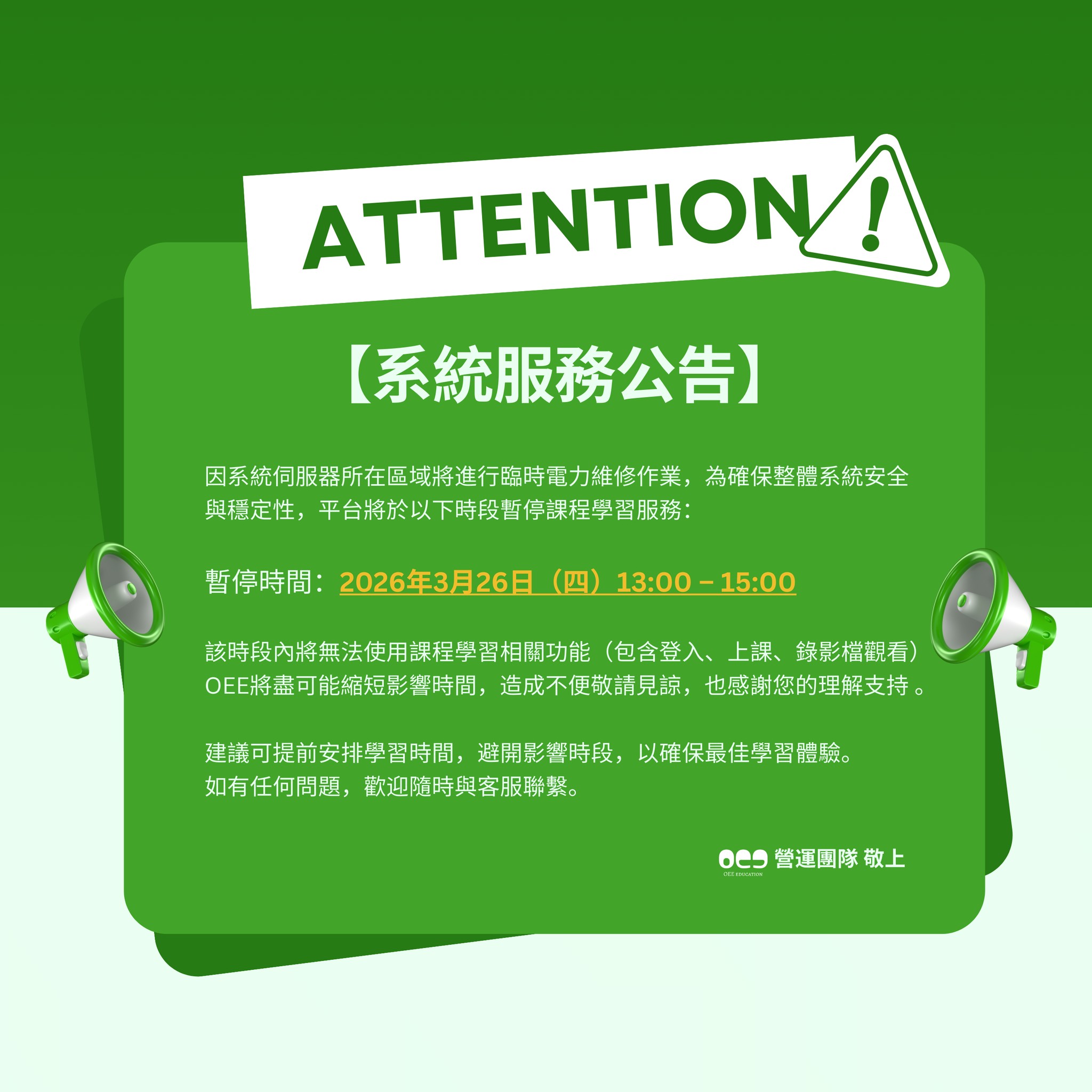 OEE全體核心共識:學習成果至上,我們致力排除無效的學習內容與授課方式,專注學習者的成長歷程,提供最正確、最有效的教學服務,將所有努力轉化為看得見的成果。